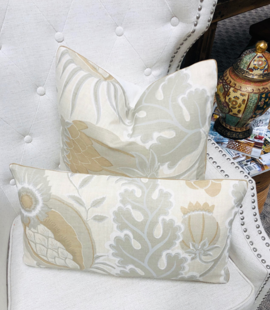Complete your ensemble by browsing our curated selection of inserts, available in various sizes to perfectly complement your pillow cover. Simply visit the "Inserts" section of our shop to discover more options, or click on the links below. We recommend using an insert that is 2" larger all around than our finished pillow cover size.