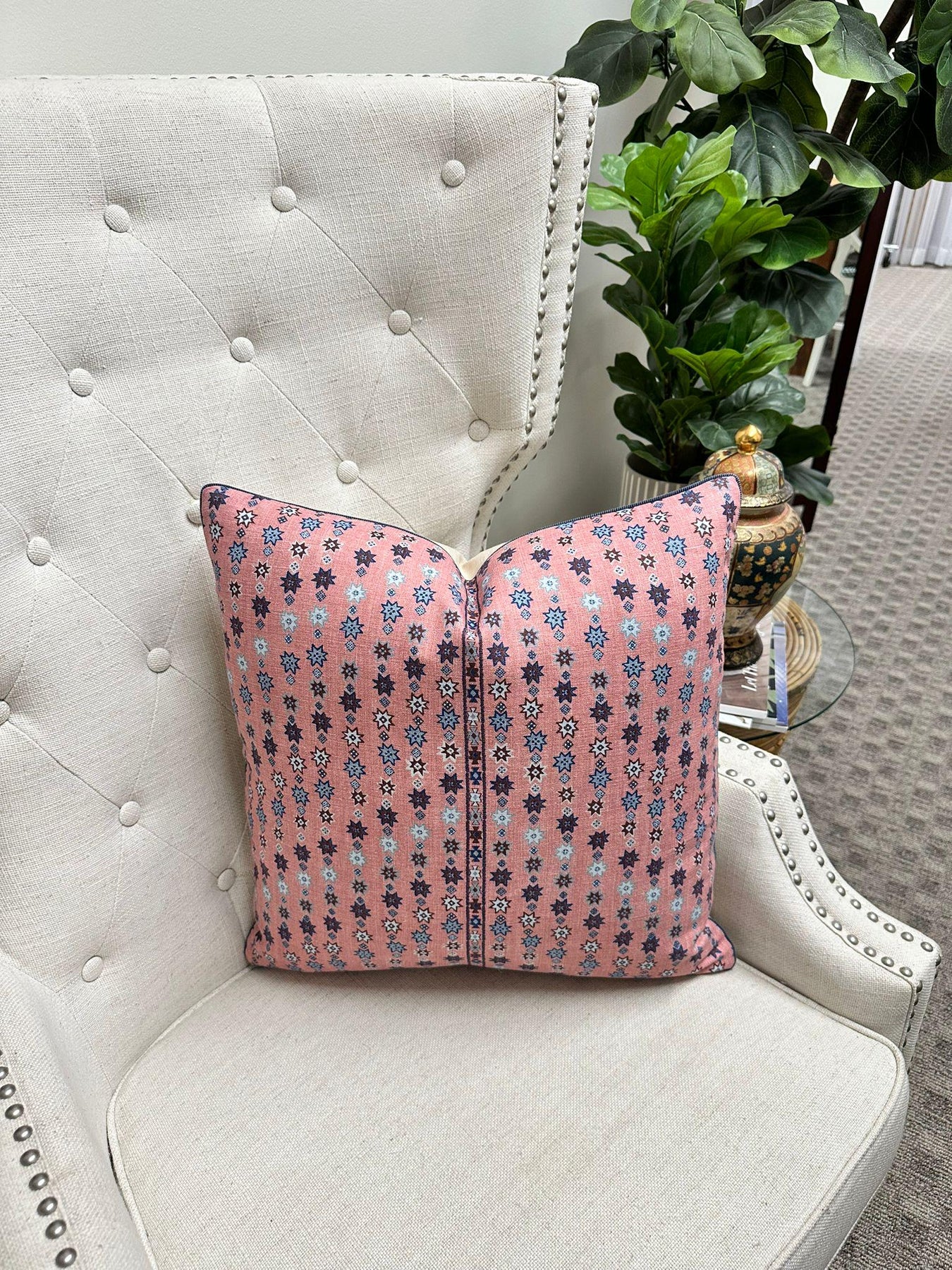 Complete your ensemble by browsing our curated selection of inserts, available in various sizes to perfectly complement your pillow cover. Simply visit the "Inserts" section of our shop to discover more options, or click on the links below. We recommend using an insert that is 2" larger all around than our finished pillow cover size.
