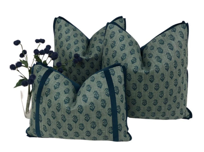 Complete your ensemble by browsing our curated selection of inserts, available in various sizes to perfectly complement your pillow cover. Simply visit the "Inserts" section of our shop to discover more options, or click on the links below. We recommend using an insert that is 2" larger all around than our finished pillow cover size.