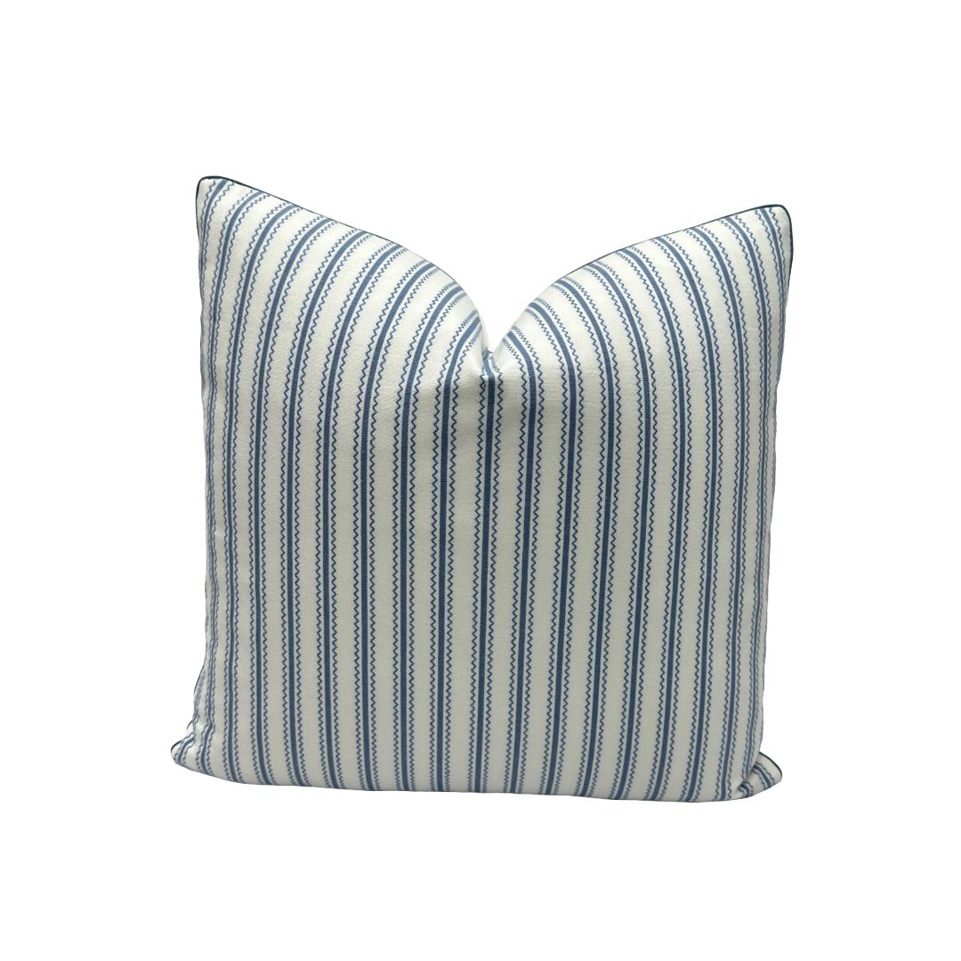 - Front Fabric: Schumacher - Birdie Ticking Stripe in Indigoย