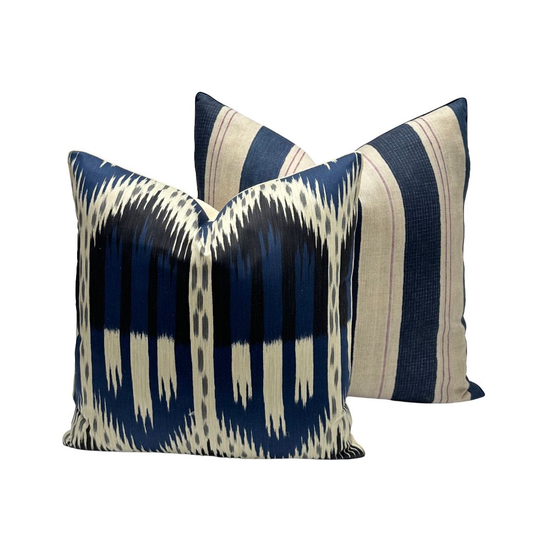 - Front Fabric: Schumacher - Bukhara Ikat in Indigo