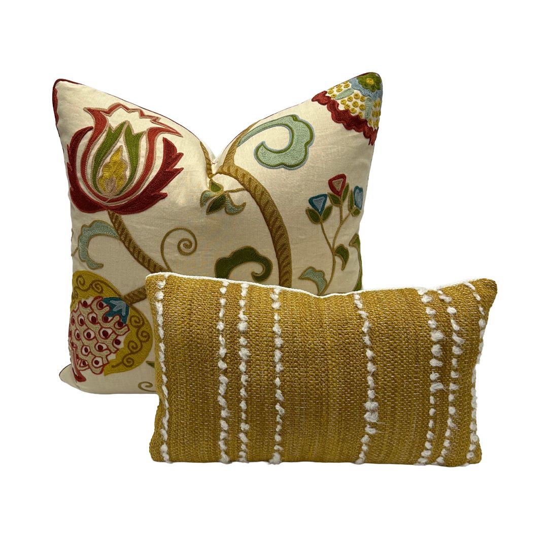 Complete your ensemble by browsing our curated selection of inserts, available in various sizes to perfectly complement your pillow cover. Simply visit the "Inserts" section of our shop to discover more options, or click on the links below. We recommend using an insert that is 2" larger all around than our finished pillow cover size.