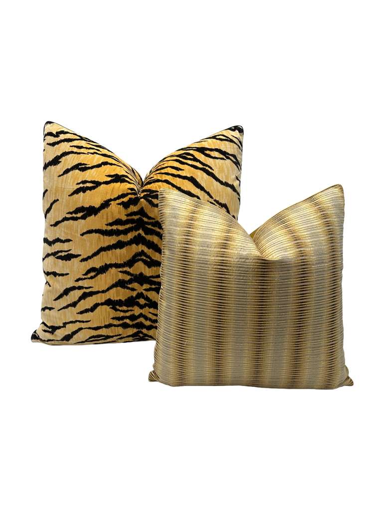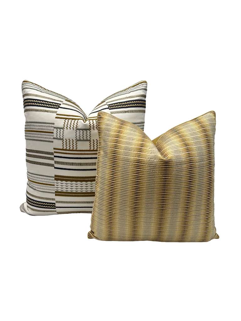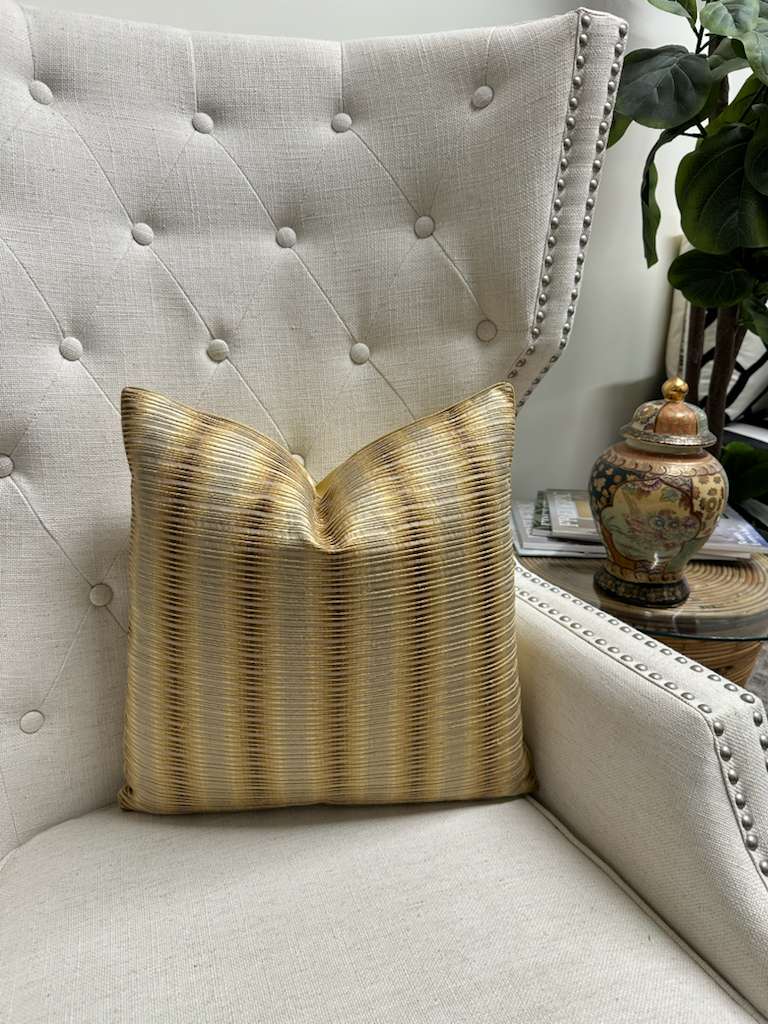 - Front Fabric: Silk Weave Stripe in Antique Gold