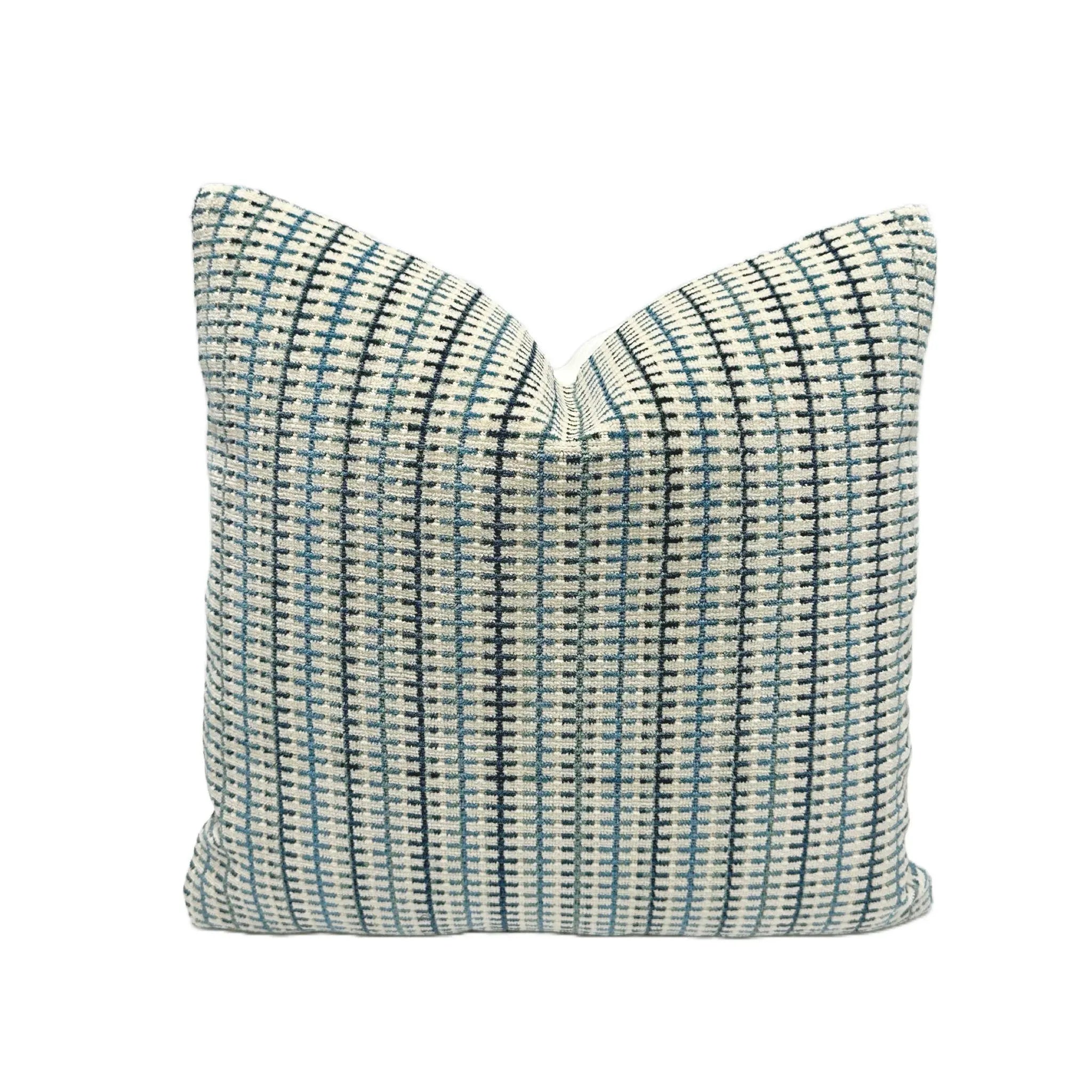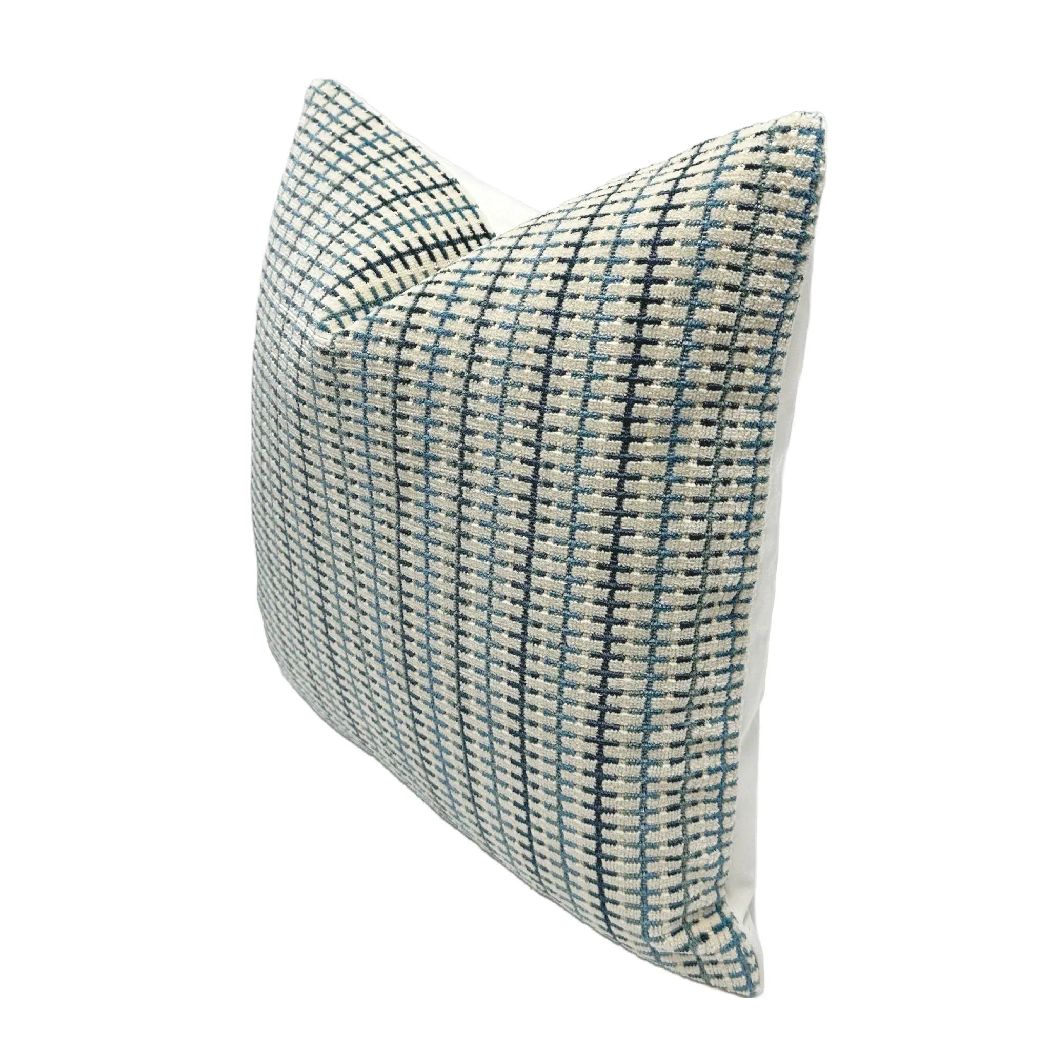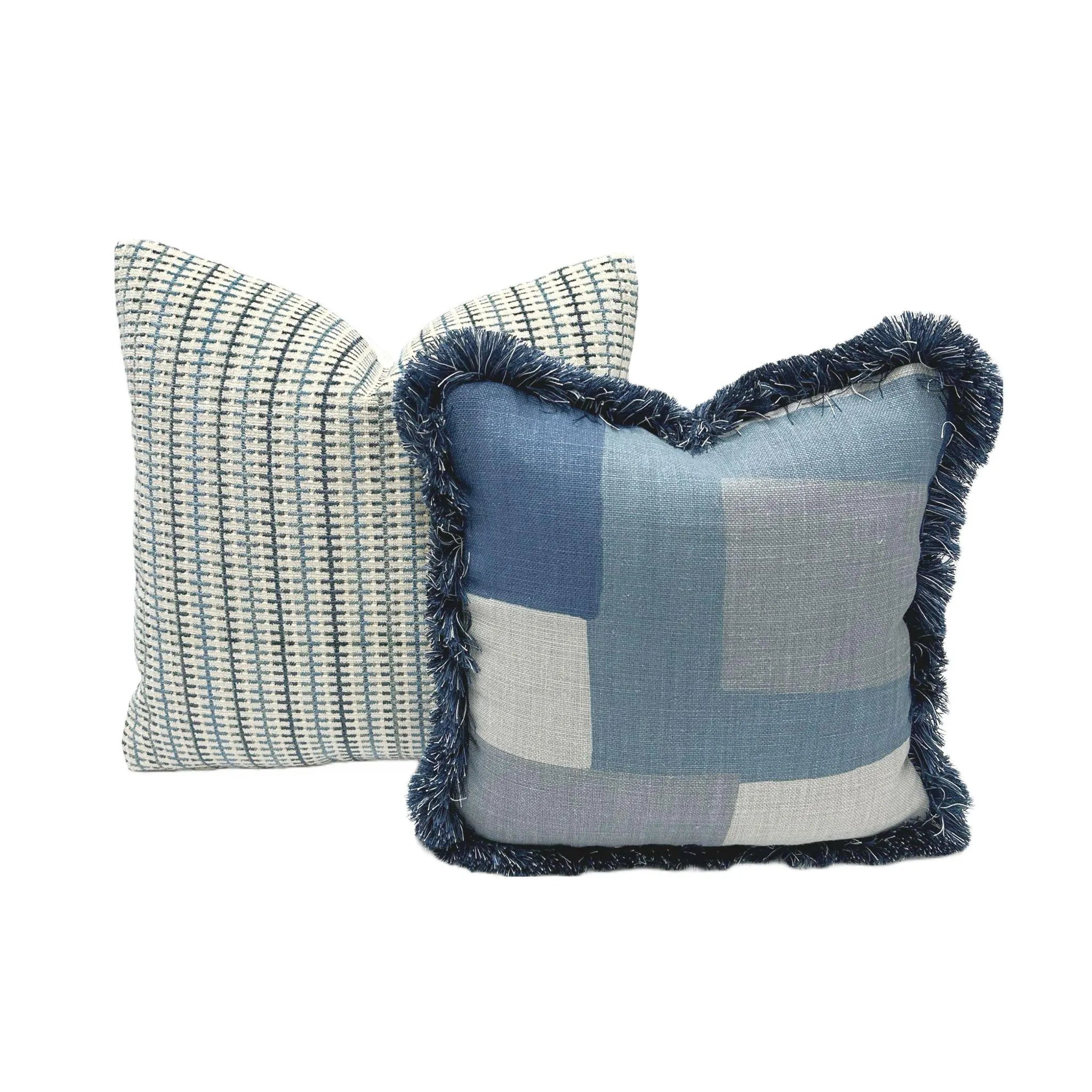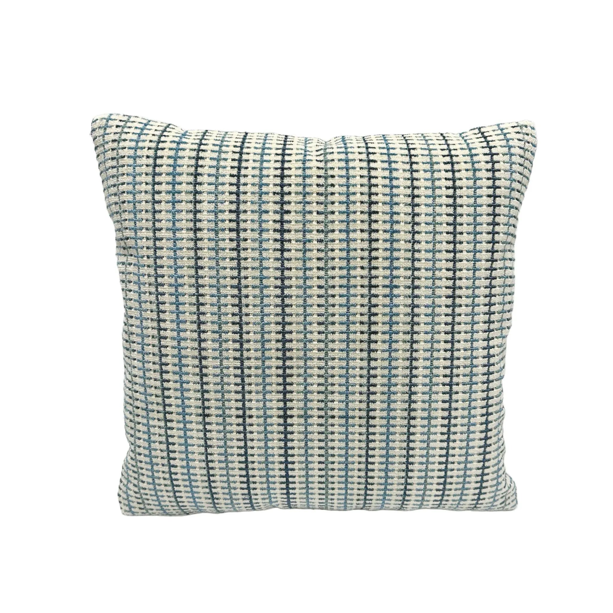 - Front Fabric: Striped Grid in Blue/Beige