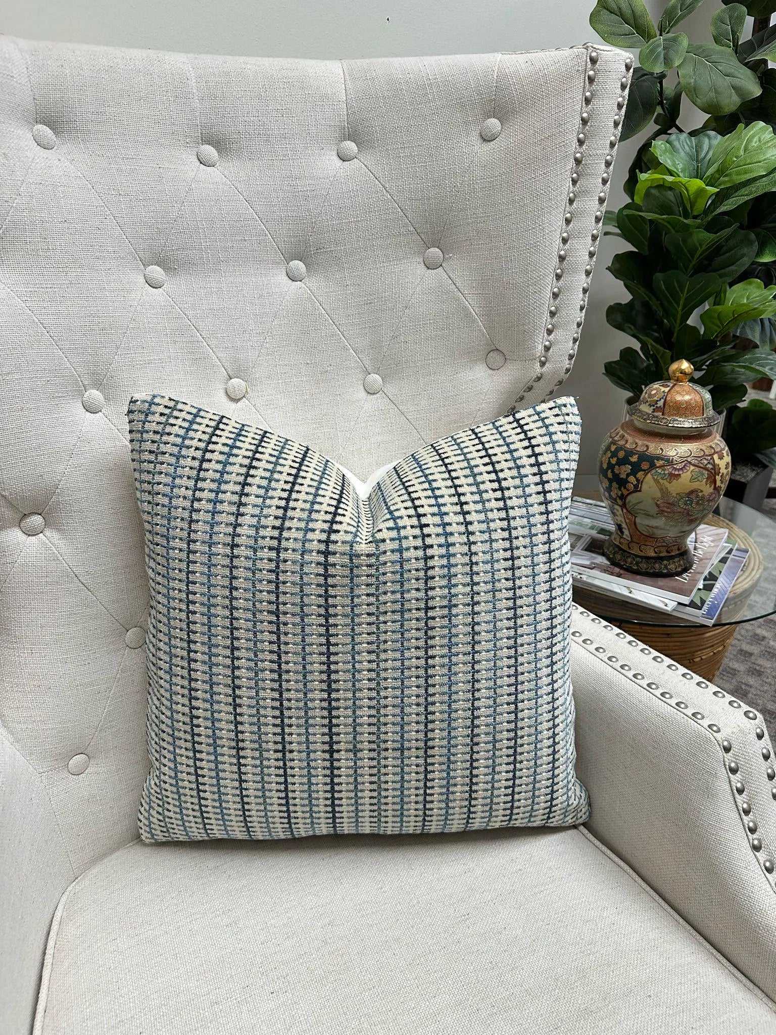 Complete your ensemble by browsing our curated selection of inserts, available in various sizes to perfectly complement your pillow cover. Simply visit the "Inserts" section of our shop to discover more options, or click on the links below. We recommend using an insert that is 2" larger all around than our finished pillow cover size.
