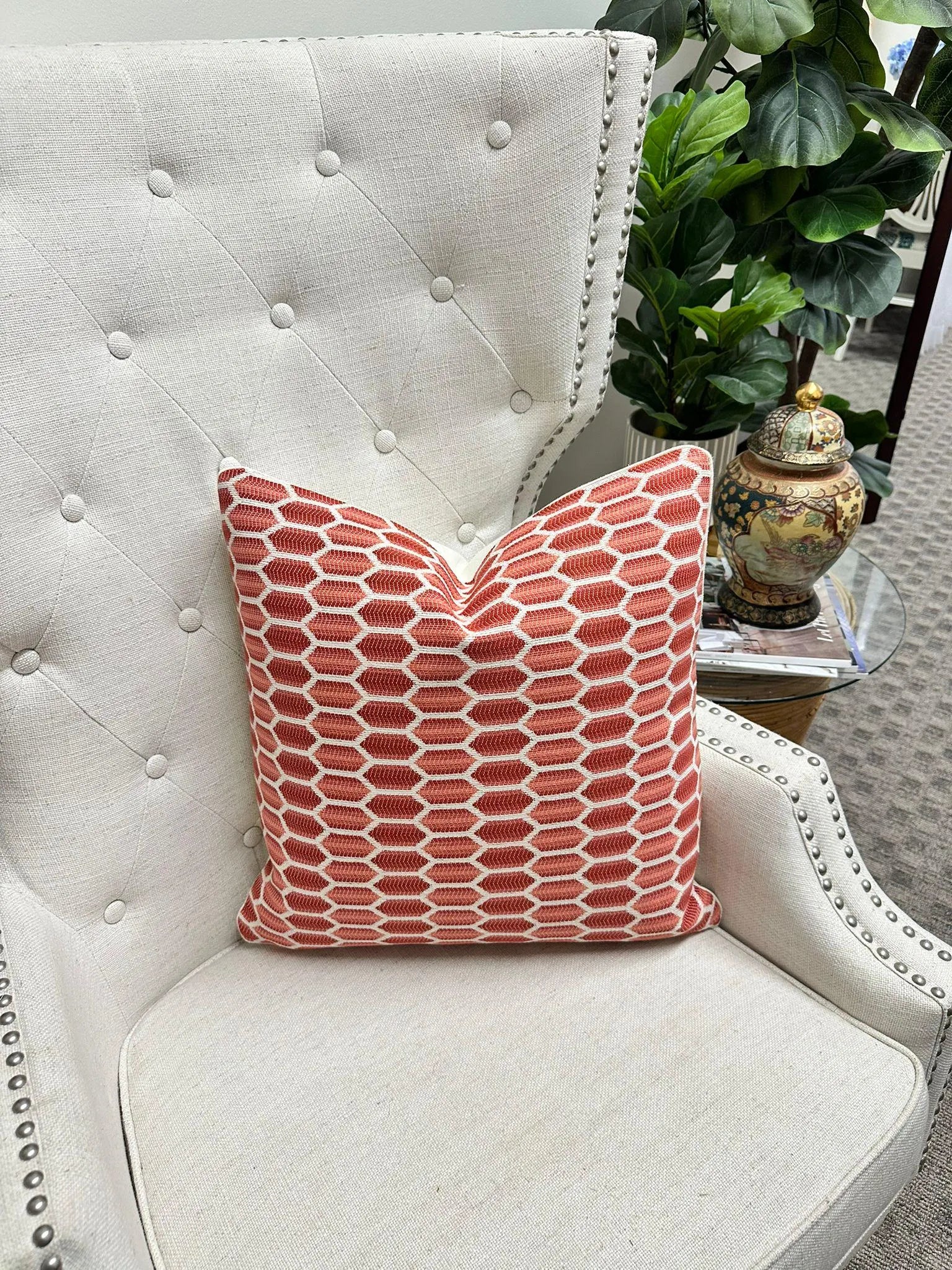 Complete your ensemble by browsing our curated selection of inserts, available in various sizes to perfectly complement your pillow cover. Simply visit the "Inserts" section of our shop to discover more options, or click on the links below. We recommend using an insert that is 2" larger all around than our finished pillow cover size.