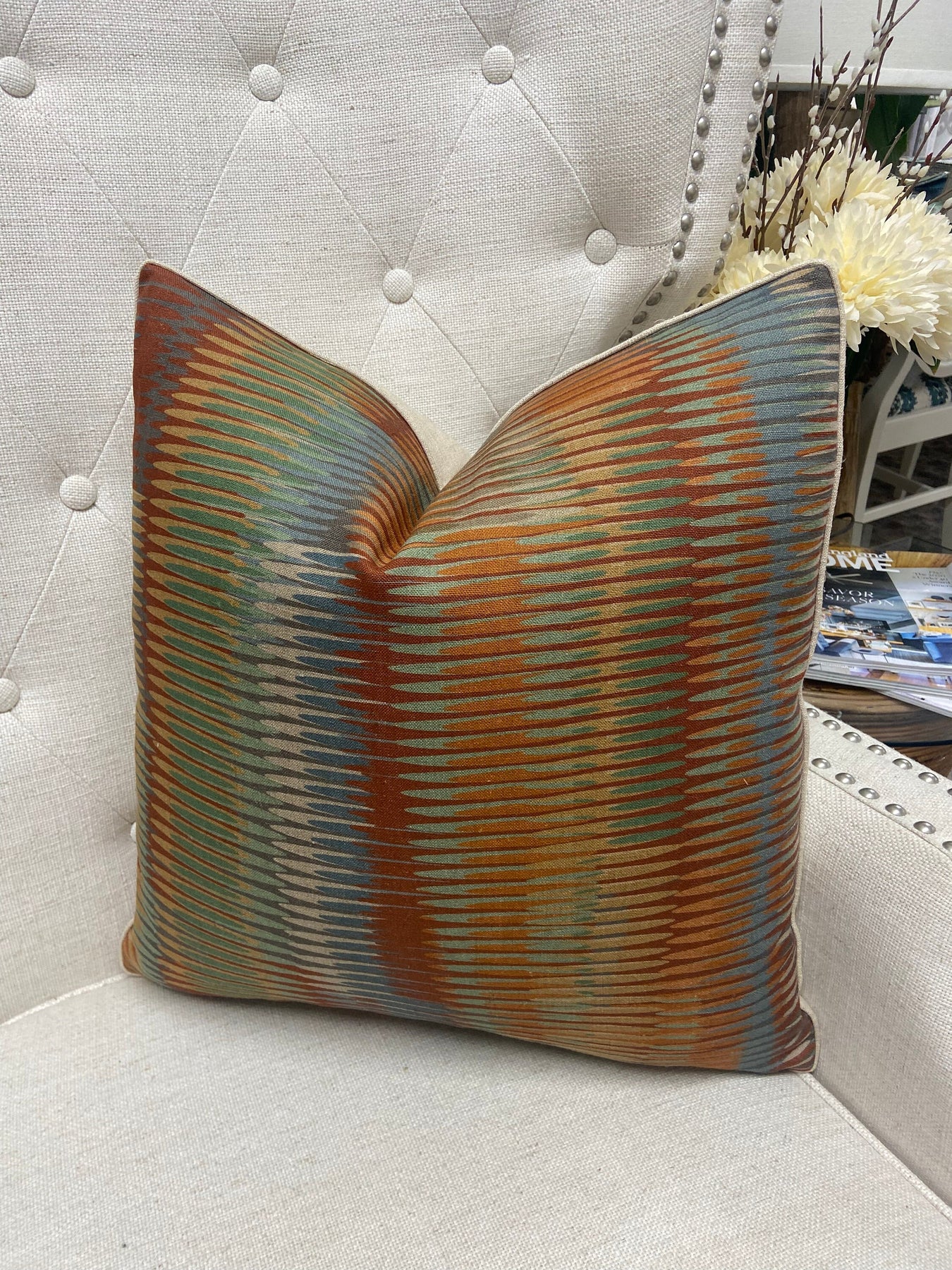 Complete your ensemble by browsing our curated selection of inserts, available in various sizes to perfectly complement your pillow cover. Simply visit the "Inserts" section of our shop to discover more options, or click on the links below. We recommend using an insert that is 2" larger all around than our finished pillow cover size.