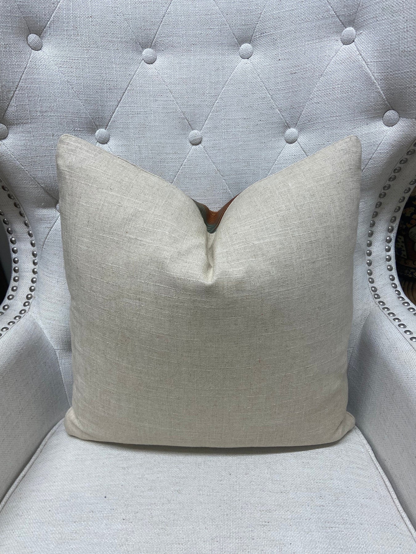- Back Fabric: Plain 100% Linen in Light Beige