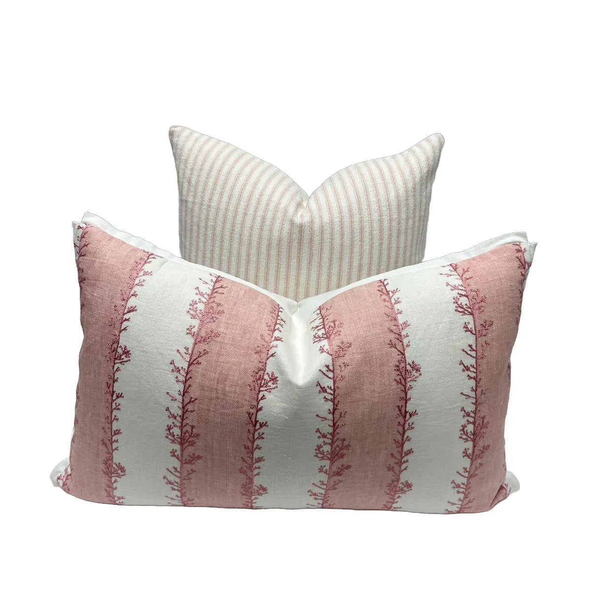- Front Fabric: Thistle Stripe Embroidery in Blush Pink