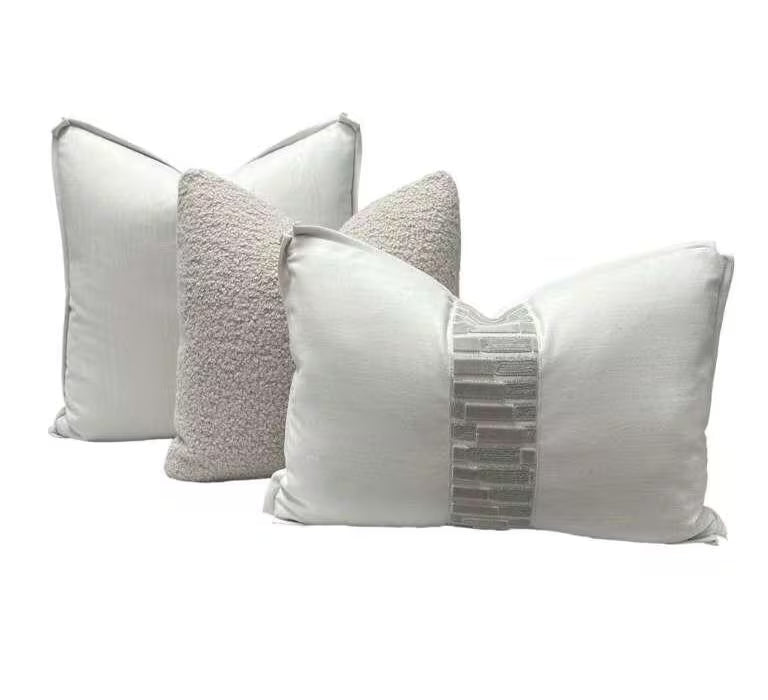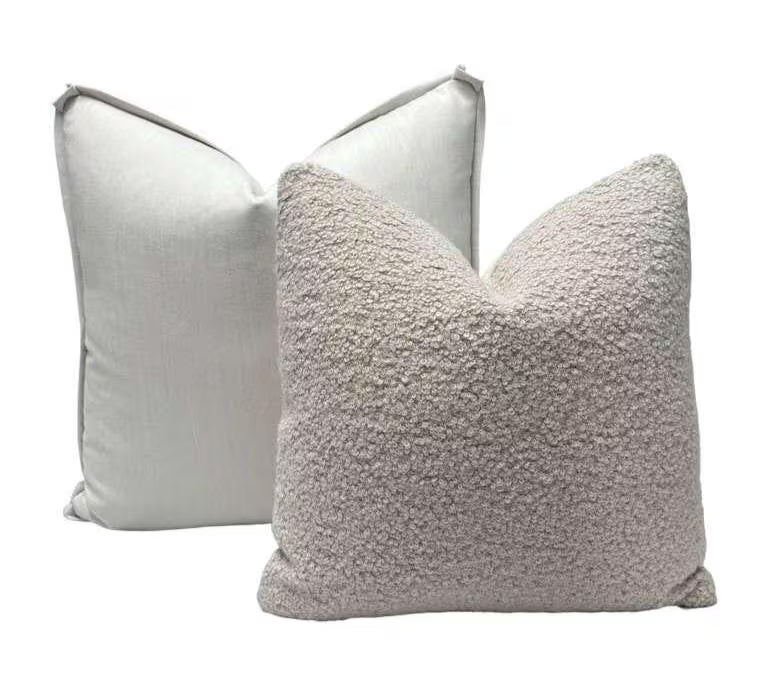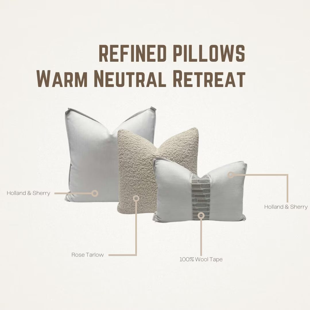 ✨ A thoughtfully coordinated pillow set featuring luxurious wool, soft alpaca bouclé, and refined neutral textures—highlighted by a Holland & Sherry decorative tape, offered as a complimentary design detail. ✨